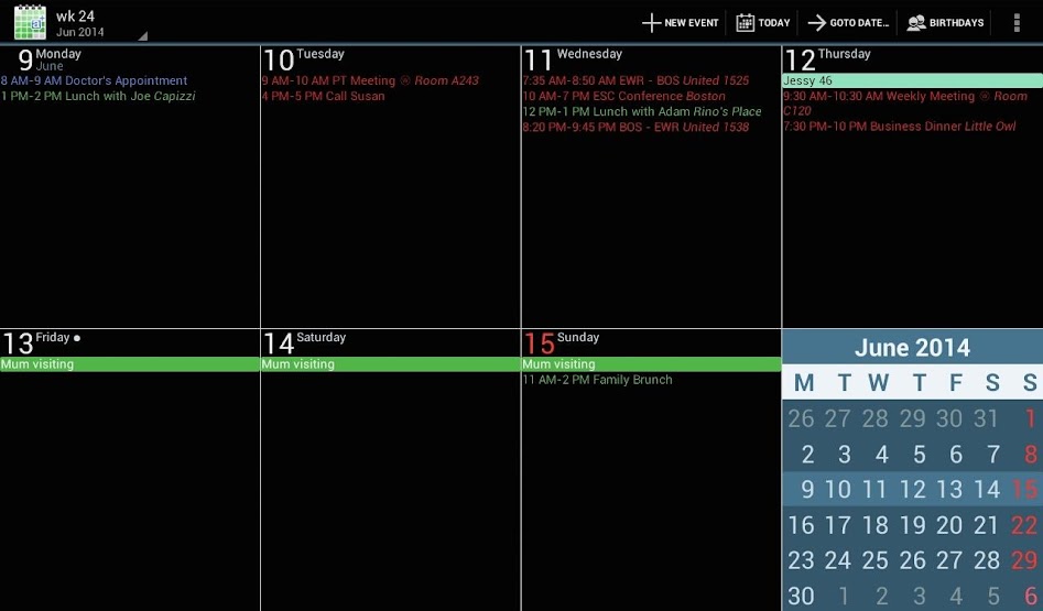 ● 48 colors per calendar, 12 per-event colors if supported by the calendar (Android 4.1+ with Google Calendar only)